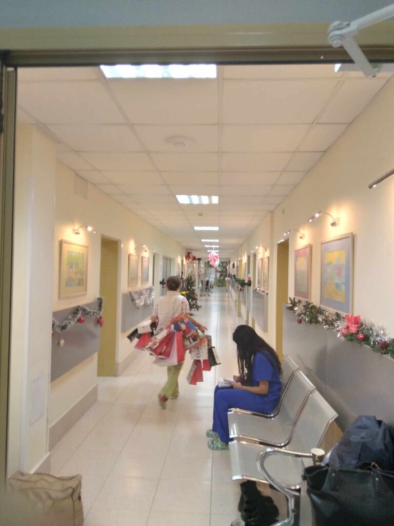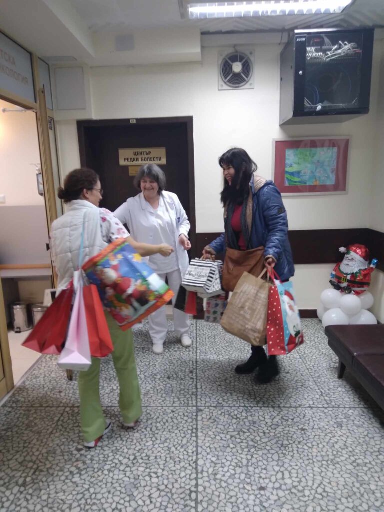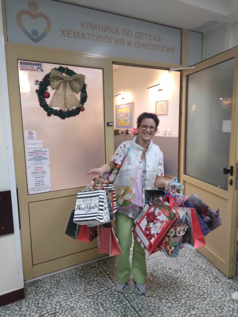 Маратонът на Добротата приключва днес, 13.12.2023г., с творческа благотворителна акция „Усмихни дете с добро“. Представители от ДГ№5 “Слънчо“ поднесоха коледните подаръци на малките пациенти от Клиника по детска клинична хематология и онкология към УМБАЛ „Св.Марина“–Варна, с началник на клиниката – Доц. д-р Милена Белчева.