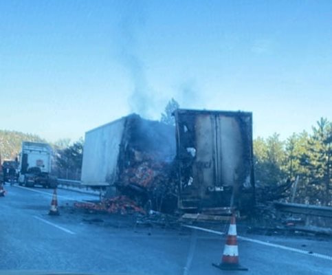 Камион се запали в движение на автомагистрала „Тракия“. Инцидентът е станал при км 19 на аутобана рано тази сутрин, съобщиха от полицията в София-област.