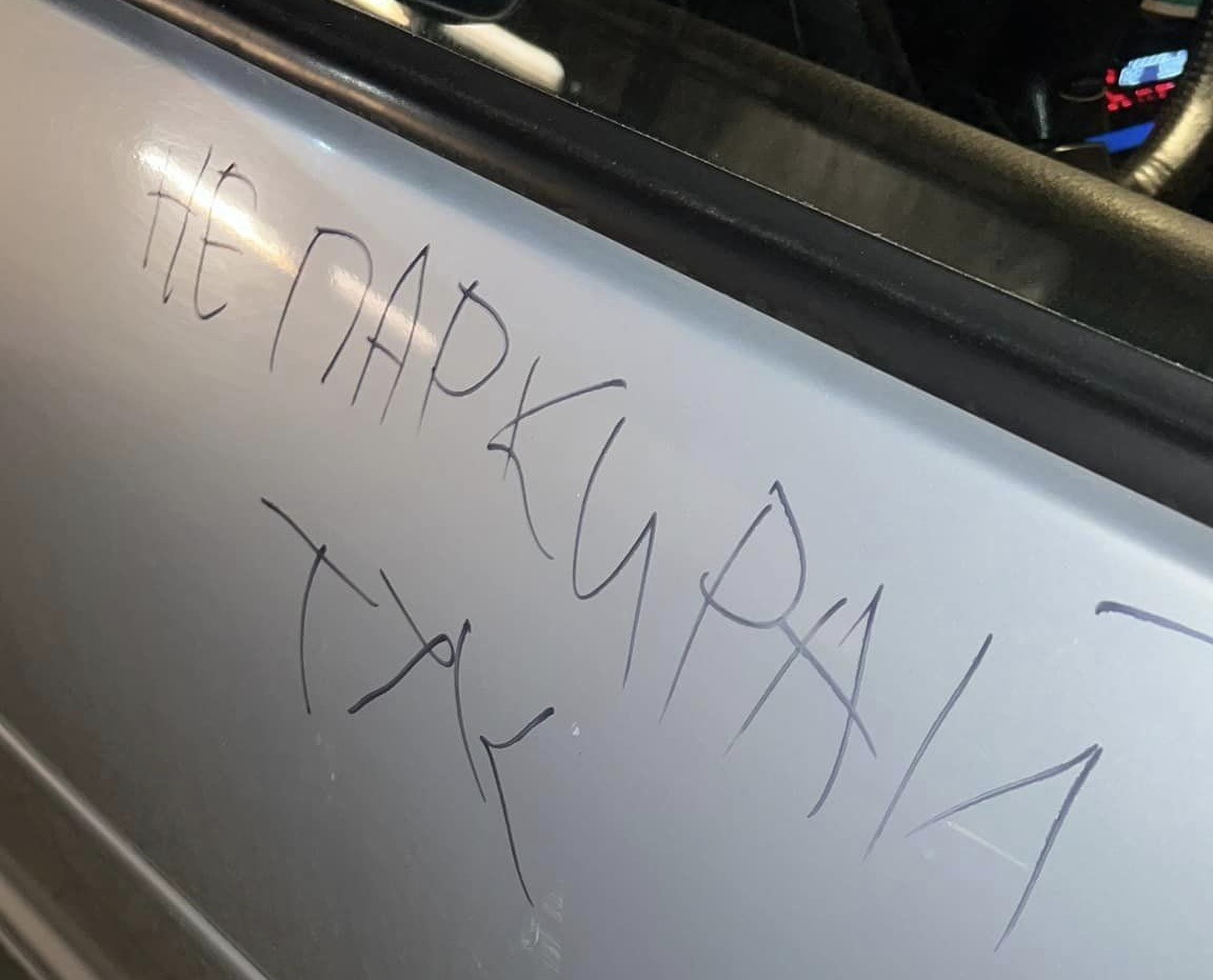 Варненец намери автомобила с надписи, след като е бил паркиран за кратко в междублоковото пространство в района на бул. „Христо Смирненски“.