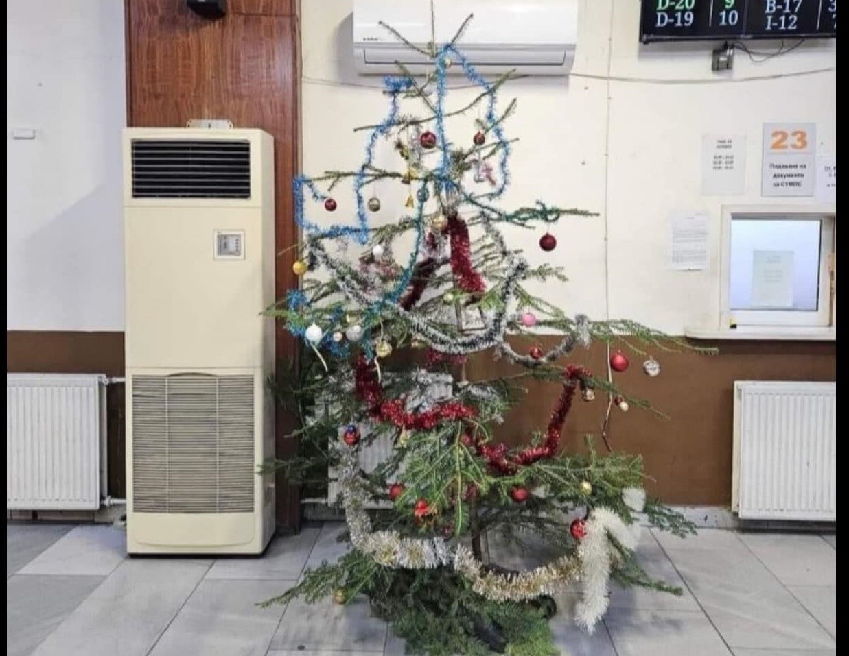 Абсурдна снимка на коледната елха в столичния КАТ разпали страстите в социалните мрежи.
