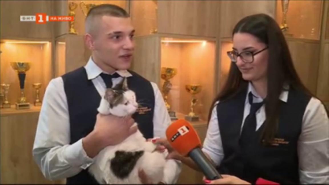 Бездомна котка, осиновена от учениците на професионалната гимназия по Туризъм във Варна се превърна в талисман на училището. Касандра е получила правото през студените дни да прекарва на топло във фоайето на сградата.