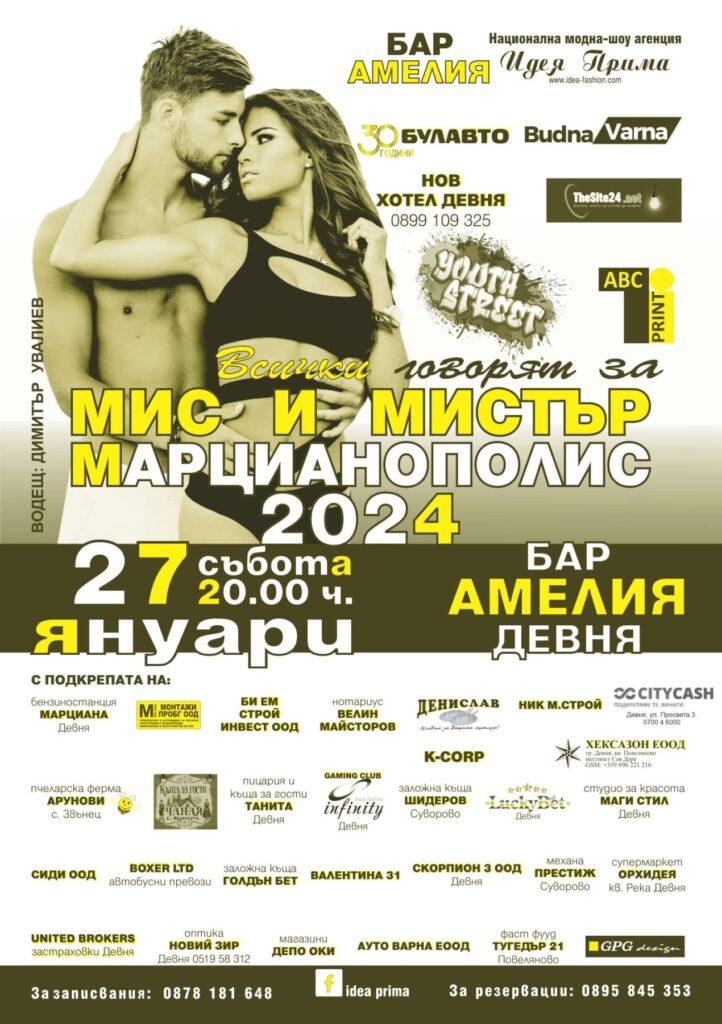 При огромен интерес в Девня, ще се проведе култовото модно шоу мис и мистър Марцианополис -2024, съобщиха за „Будна Варна“ организаторите на събитието. То ще се проведе на 27 януари от 20 часа в популярния Амелия бар в Девня.