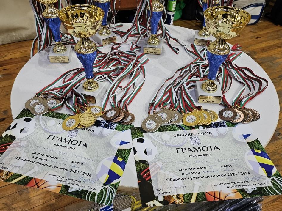 Община Варна осигури предметни награди за отбора на Професионалната техническа гимназия, който стана победител в състезанието по хандбал за юноши, част от Общинските ученически игри 2023/2024 година.