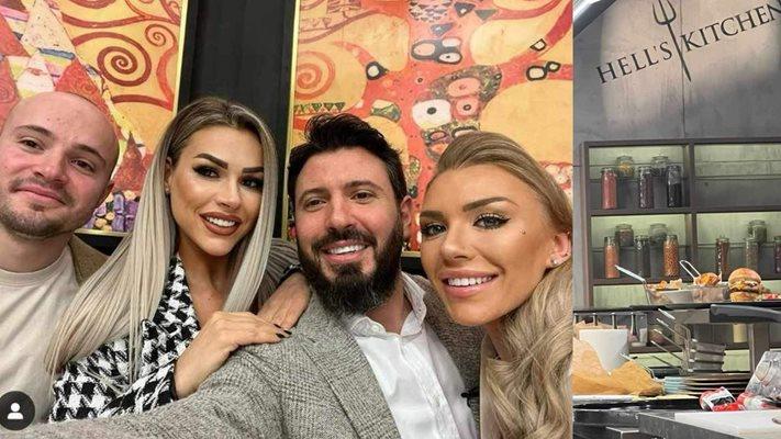 Бившият на фолкпевицата Емануела публикува снимка от студиото на „Хелс Китчън“ заедно с Денислава. До тях позират още двама участници от последния сезон на „Игри на волята“ – футболния съдия Крум и силиконовата „Мисис България“ Моника Николаева. Четиримата са гости в новия сезон на кулинарното шоу, където ще се изявява друг култов участник в риалити предаването – Гатьо.