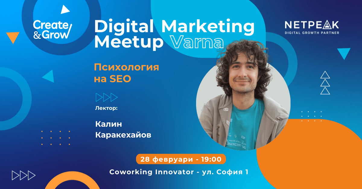 Гост-лектор ще бъде Калин Каракейов, основател на Seo.Domains и Edoms.com, който ще Ви разкаже повече за „Психология на SEO„.