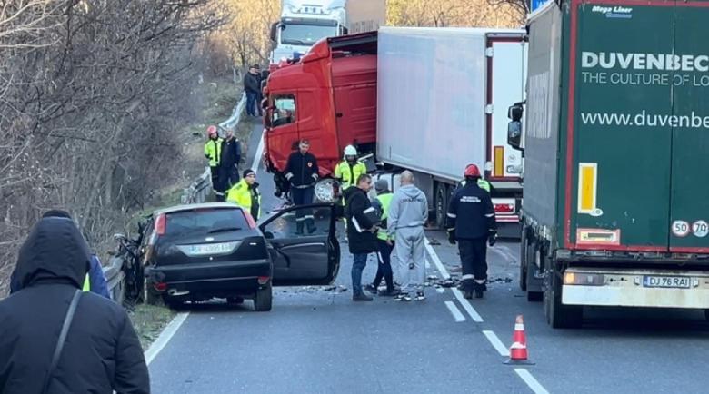 Тежка катастрофа между два тира блокира Кресненското дефиле
