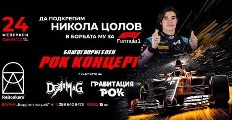 Групите DeatMag от Пловдив и „Гравитация рок“ от Плевен гостуват днес, 24 февруари, във Варна за благотворителен концерт в подкрепа на младия ни пилот във Формула 3 Никола Цолов.