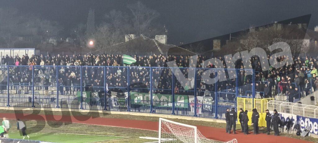 Преди началото на двубоя двете агитки създадоха невероятно настроение с традиционните песни на победата и развети знамена в подкрепа на любимите отбори. Още от самото начало двата отбора се захапаха здраво в средата на терена. През първото полувреме преобладаваше битка за всяка топка и играчите по често грешаха в стремежа си за контрол на терена.