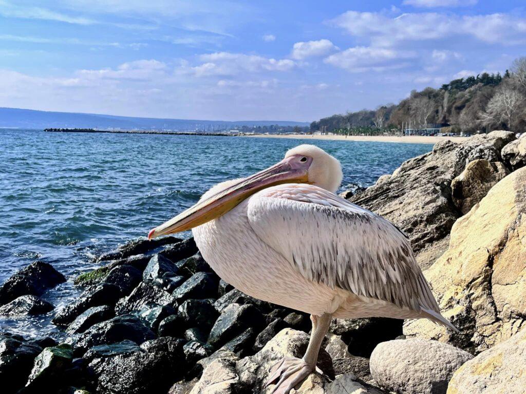Розов пеликан се превърна в новата атракция на стотици варненци, през последните няколко дни, видя репортер на медия „Будна Варна“.