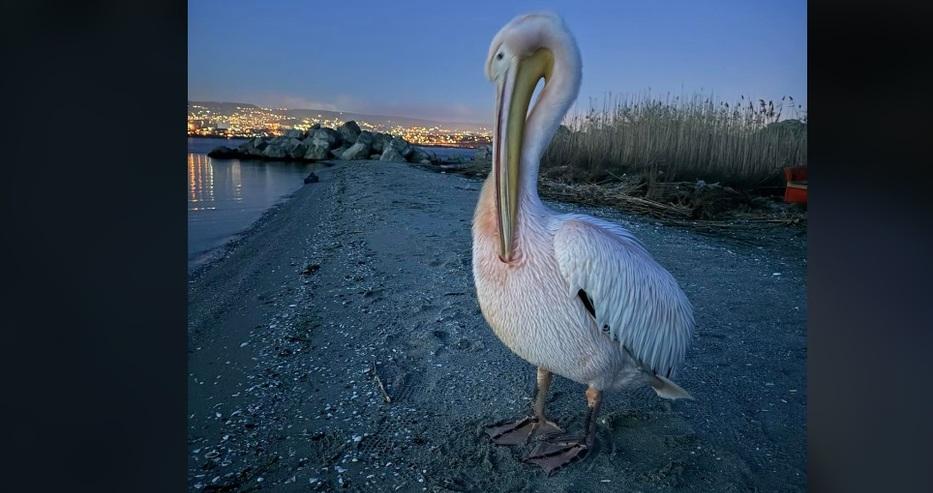 Някои помислиха, че това е същият пеликан, но този е с друга окраса, но е дори по-общителен от този на Крайбрежната алея.