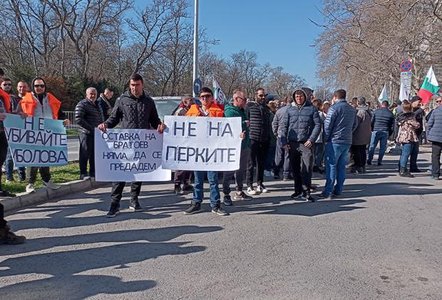 „От 3 месеца протестираме срещу перките. Това е съсипване на бизнеса. По наша информация искат тези перки да бъдат на 10 метра дълбочина в морето, което е на 300 метра. Ние сме съгласни да са поне на 100 метра дълбочина, което е много по-далеч от брега, както и сервитутната зона да е 1 миля“, обясниха рибарите.
