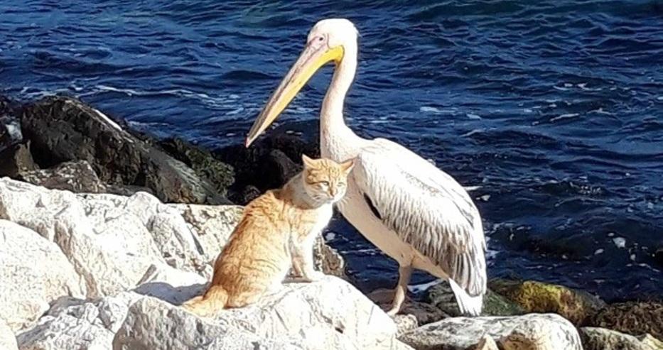 Рижава котка споделя с него слънчевите дни, на камъните до морската алея, затова информира Д. Хейнрих с пост в социалната мрежа фейсбук.