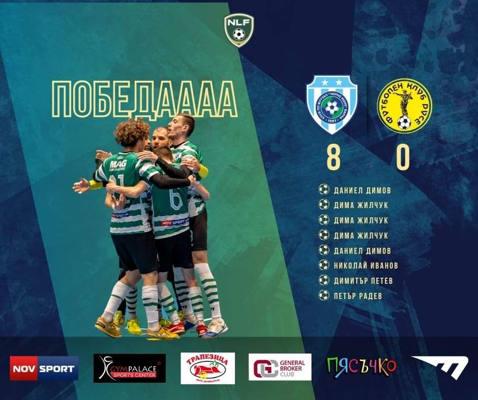 Категорична и убедителна победа с 8:0 записа Черно море срещу ФК Русе в среща от 12-ия кръг на Националната футзал лига, съобщават от клуба на варненци.