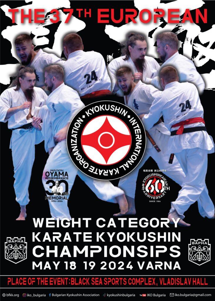 На 18-ти и 19-ти Май, в гр. Варна, зала“Владислав“ Черно море, ще се проведе 37-мото Европейско първенство по киокушин карате за мъже и жени на категории, 17-то Европейско първенство за деца, юноши и девойки, 11-то Европейско първенство за ветерани.
