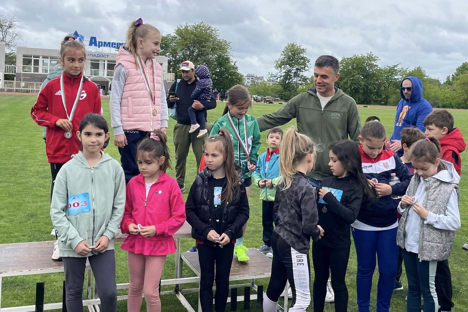 Медалите за призовите места и специалните награди за участие на най-мъничките лекоатлети, връчи директорът на дирекция „Спорт“ – г-н Кристиан Димитров.