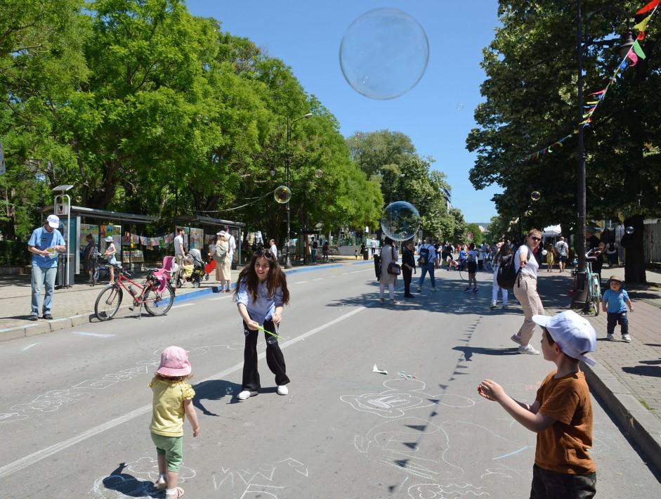 Централната част на Варна днес беше път с предимство за децата и родителите. От 9:00 ч. тази сутрин затворени за автомобили са централните булеварди от Общината и от Икономическия университет към входа на Морската градина. Автомобилният трафик, обичайно натоварен и в съботните дни, отстъпи на игрите на пътното платно.