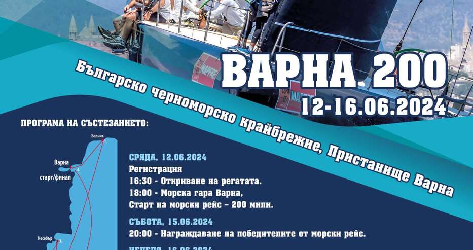 Регата за килови яхти Варна 200 (две денонощия без прекъсване) стартира на 12 юни от Морска гара Варна.