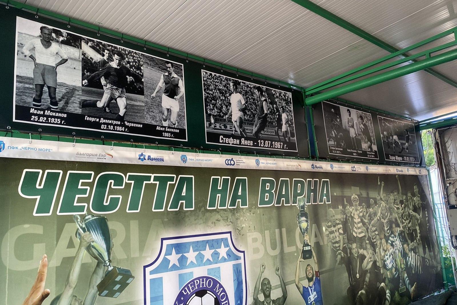Отскоро от двете страни на входния тунел на „Тича“ са поставени черно бели портретни снимки на някои от най-големите имена в клубната история на Черно море като Иван Моканов, Димитър Боснов, Симеон Нинов, Георги Димитров -Червеният, Тодор Марев, Стефан Богомилов , Рафи Рафиев, Абил Билялов, Янко Атанасов, Здравко Митев, Стефан Янев, Тодор Атанасов -Барона.