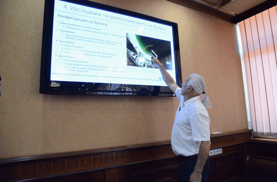 Изследван е ефектът и на двете конфигурации. При по-късата буна може да има частично преминаване на пясък. По-дългата буна ще стига до дълбочина около 4,5 метра и с това гарантираме, че няма да има акумулиране на пясък на входа на пристанището, заяви Савов. Той поясни, че съоръжението може да бъде изградено поетапно на три части. Така по време на изграждането ще се извършва мониторинг и ще се следи дали то функционира според предварително изградения модел.