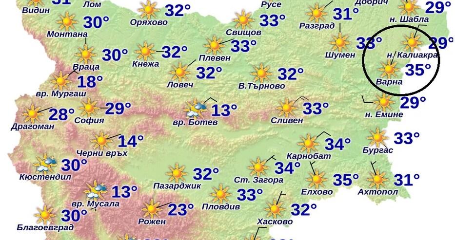 Към 12 часа Варна е по-топъл дори от Сандански, Русе, Кнежа , Плевен и Видин, посочиха от Метео Балканс.