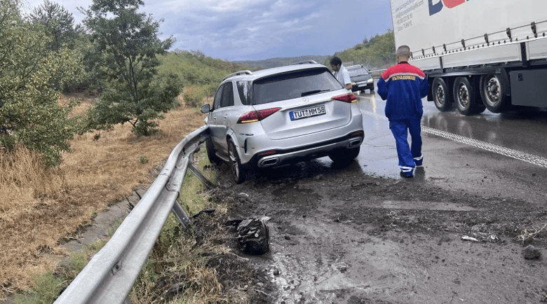 „Мерцедес“ с немска регистрация се е забил в мантинелата на 27 км на аутобана в посока София, в района на Вакарел. Очевидци съобщават за пострадали.