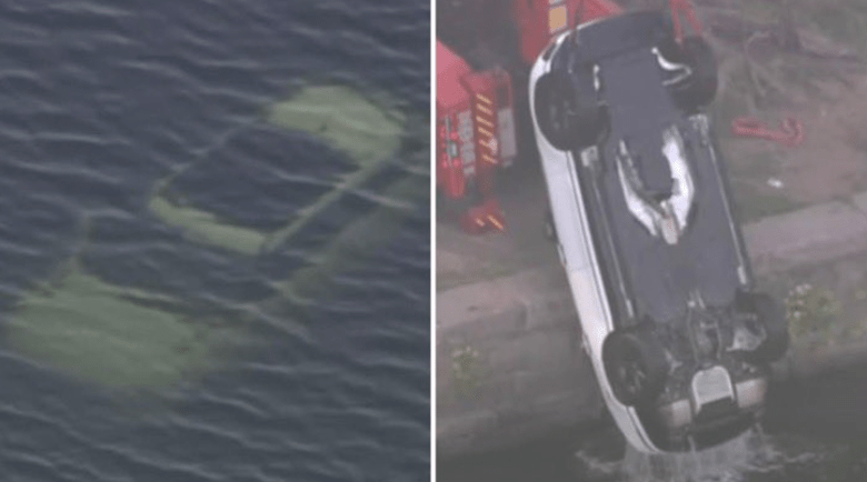 Бурна нощ на задната седалка завърши неочаквано с потъването на джип Range Rover в река. Инцидентът е станал в ранните часове на 28 август във Филаделфия, САЩ.