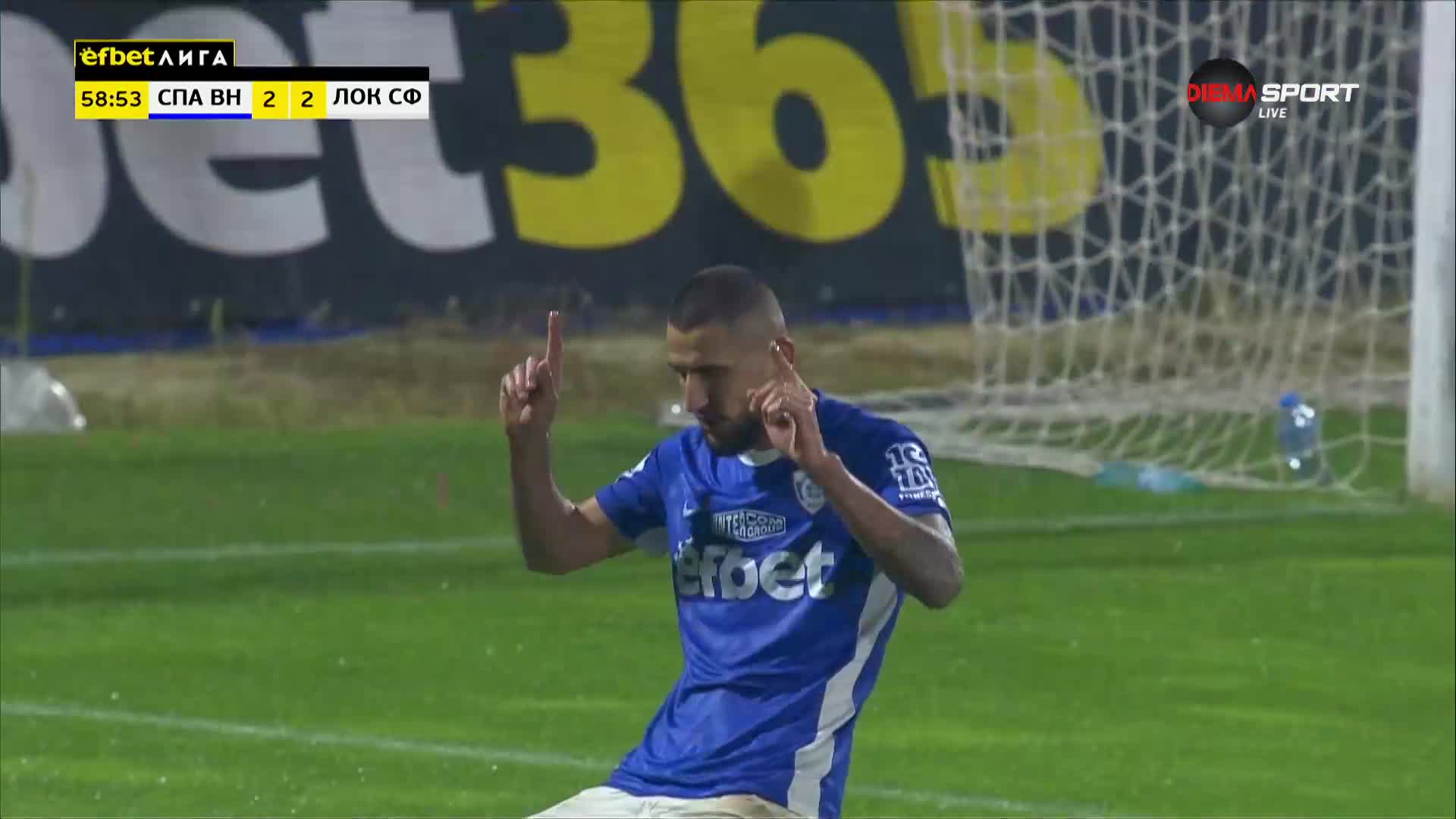 В 60-ата минута натискът на домакините даде резултат и те изравниха. Познатата комбинация между Антонио Вутов и Ахмед Ахмедов доведе до това нападателят на “соколите” да бъде изведен на удобна позиция. Останал сам срещу вратаря Ахмедов не сбърка и направи резултата 2:2.