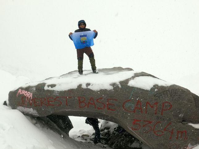 „В крайна сметка общо 5 човека достигнахме базовия лагер в подножието на Еверест, на 5346 метра надморска височина, след голяма борба с снега“, разказа морякът-алпинист.