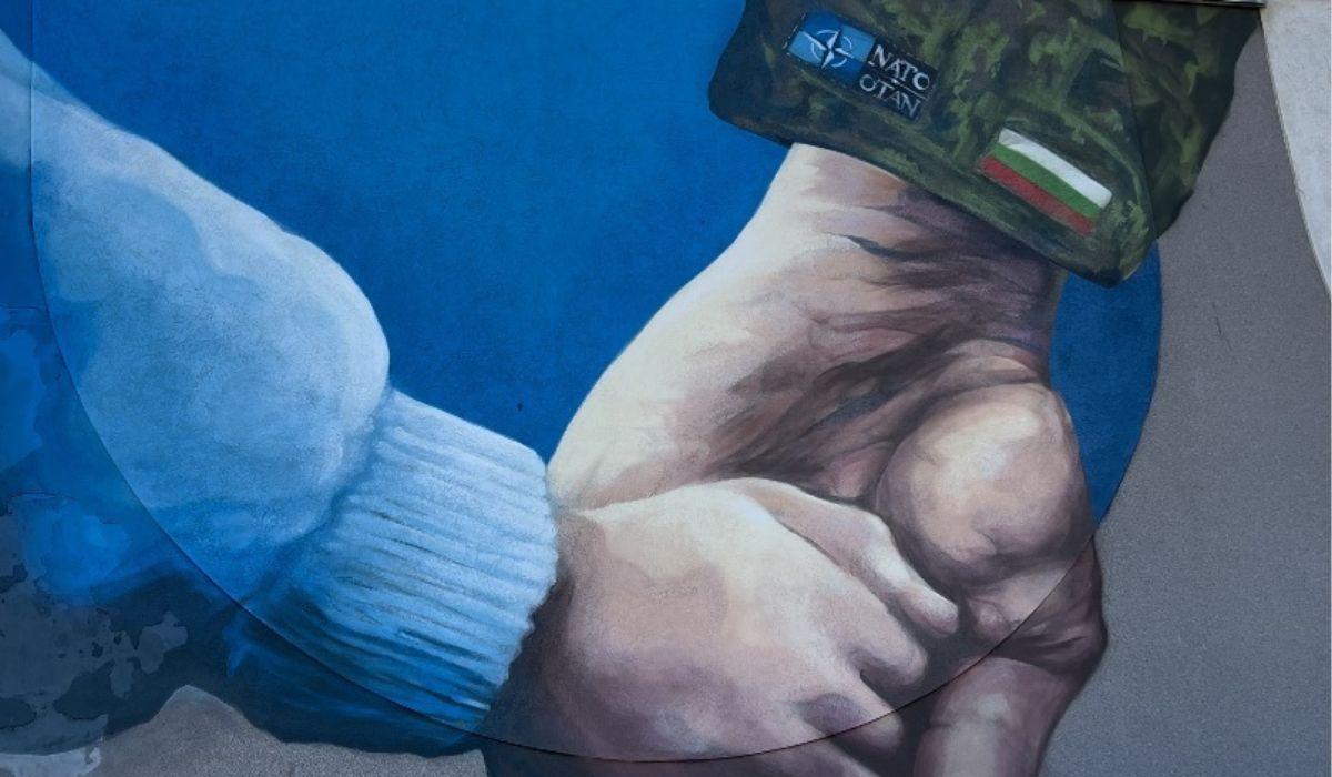 Преди дни във Варна, в близост до плажа, беше изобразена ръка на войник, който държи за ръката дете. На ръкава на войника е изписано на чужд език НАТО.