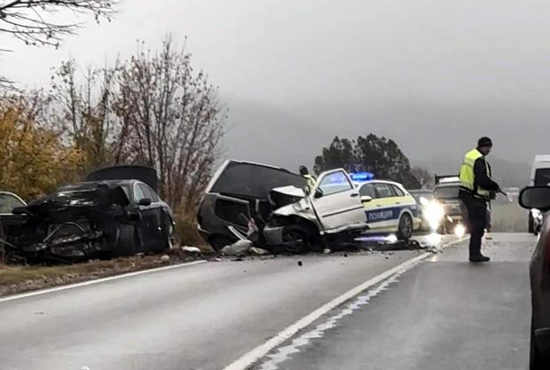 Инцидентът е станал по-рано днес между две леки коли и тежкотоварен автомобил.