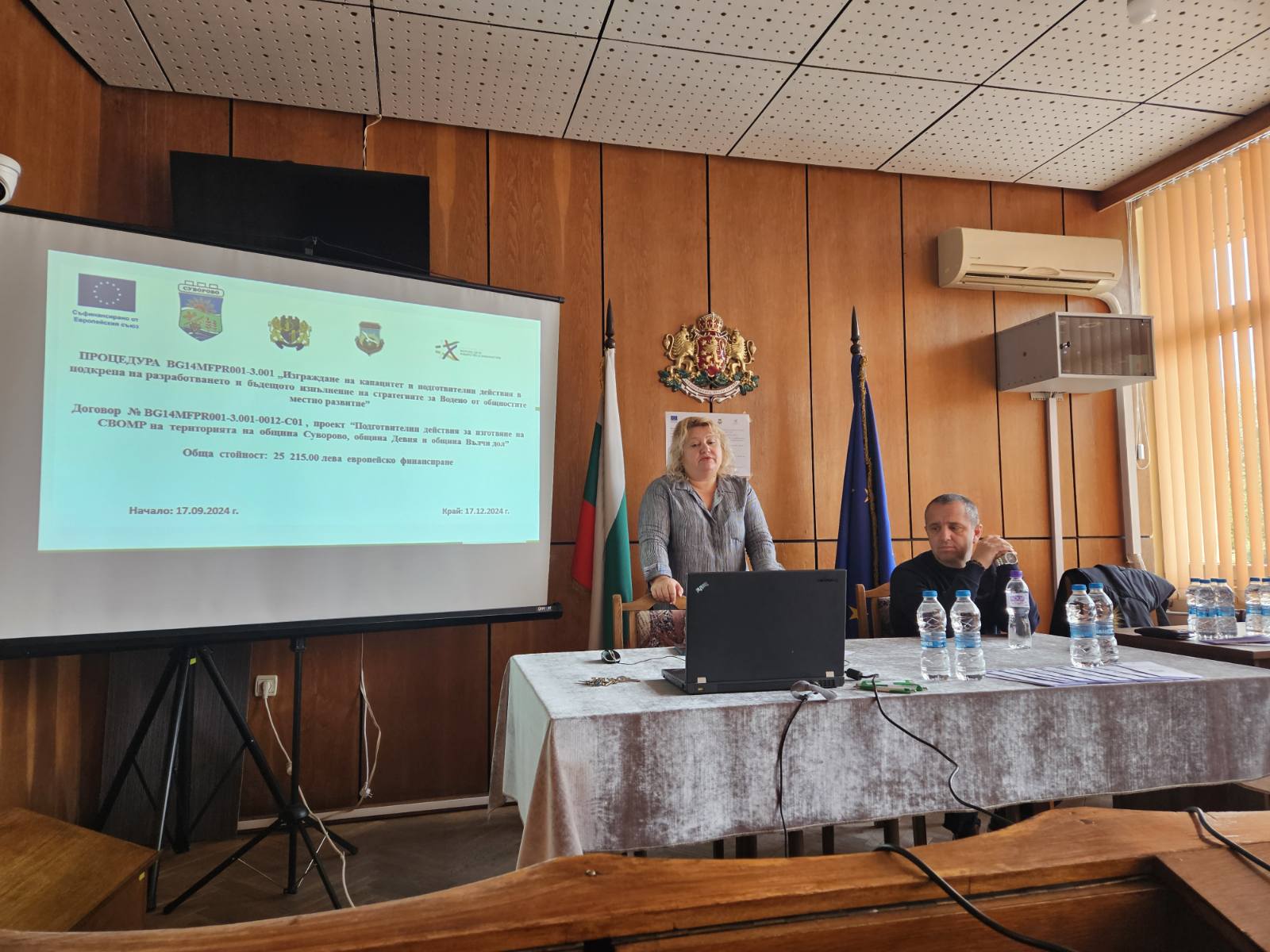 На 14.11.2024 г . в община Суворово, община Девня и община Вълчи дол, бяха проведени три срещи с представители на основните заинтерасовани страни от трите сектора за популяризиране на подхода ВОМР и представяне на основните изискавания за създаване на МИРГ и подготовка на СВОМР, заложени в изпълнението на дейност 1 „Популяризиране на подхода ВОМР и процеса на разработване на стратегия за ВОМР“.