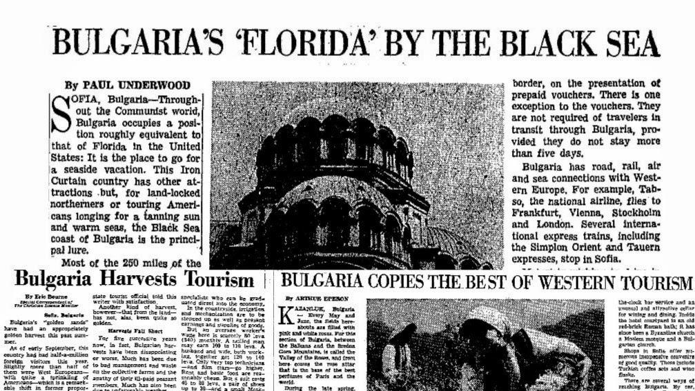 На 20 март 1966 г. „Ню Йорк Таймс“ излиза с обширна публикация под заглавие „България копира най-доброто от западния туризъм“. Вестникът пише: