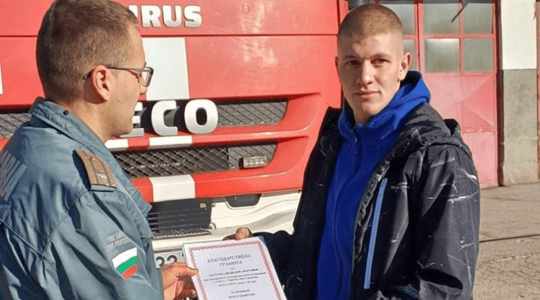 По време на гостуването му в пожарната началникът на Районна служба „Пожарна безопасност и защита на населението“-Търговище гл. инсп. Ангел Ангелов връчи на него и на Мирослав Драгомиров благодарствени грамоти за доблестната им постъпка, благодарение на която бе спасен човешки живот.