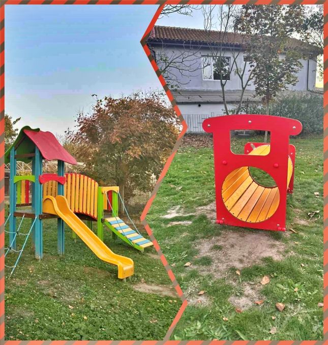 В изпълнение на проекта в двора на детската градина е монтиран сенник на един от съществуващите пясъчници, а друг е превърнат в китна градина с разнообразие от растения – цветя, билки, храсти и др. Направени са още вело пейка „Сърце“, детски тунел, както и цветна ограда, която отделя опасни участъци.
