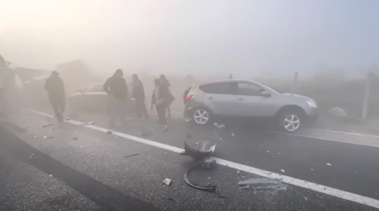 От Областната дирекция на полицията по-рано съобщиха за две катастрофи в района на село Ново Делчево, община Сандански, поради гъста мъгла. По първоначални данни има един пострадал, с болки в гърдите и фрактура на носа. Движението е затворено и в двете посоки.