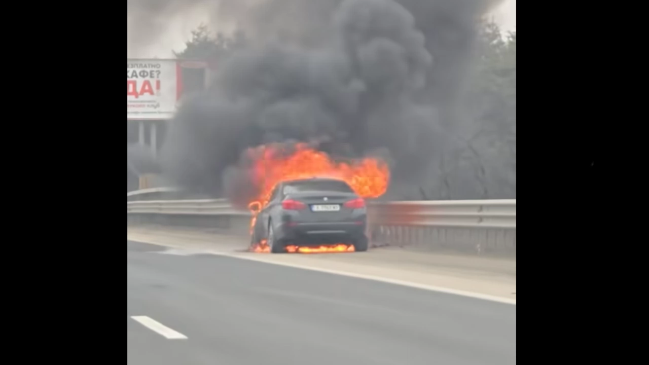 Автомобил изгоря на магистрала „Тракия“ малко след Вакарел в посока Бургас.