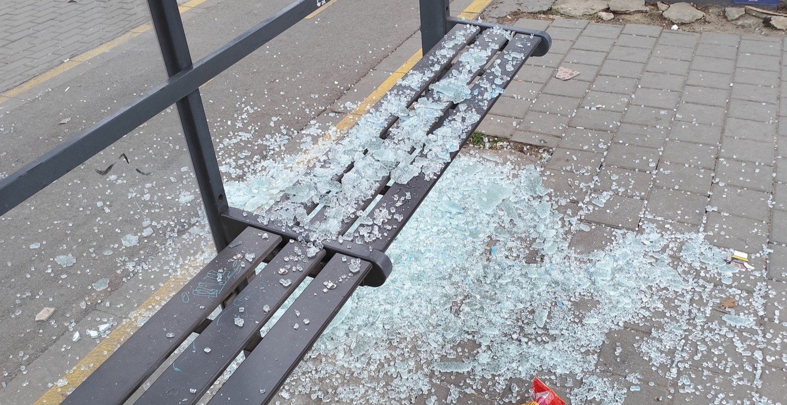 Спирката „Лятно кино Тракия“ в посока кварталите беше изцяло изпотрошена от вандали, както съобщи репортер на медия „Будна Варна“, цитирайки публикация на Антон Славов във Facebook.