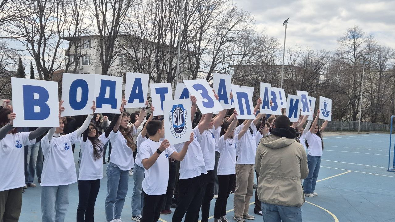 Учениците се събраха в двора на гимназията и издигнаха надпис, който съдържа мотото на новата кампания, инициирана от ВиК Варна.