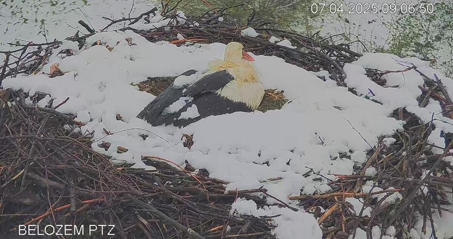 През вече настъпилата пролет повечето от белите щъркели, гнездящи в Белозем, заеха гнездата си и вероятно последният сняг от тази сутрин буквално ги затрупа. Въпреки че гледката е необичайна, тя не е толкова тревожна за птиците и тяхното бъдещо поколение, каза Градев. По думите му щъркеловите семейства не са обезпокоени сериозно от снежната обстановка и продължават да са неотлъчно в своите гнезда, а тези, които вече са снесли своите яйца, ги мътят търпеливо. Предвид, че се очаква изненадващата зимна обстановка да е кратка и снегът да не се задържи дълго, щъркелите ще се справят с лошите метеорологични условия и безпроблемно могат да преживеят ден-два без храна. Това не е прецедент за района, като преди няколко години жителите на селото станаха свидетели на подобна гледка в края на март.