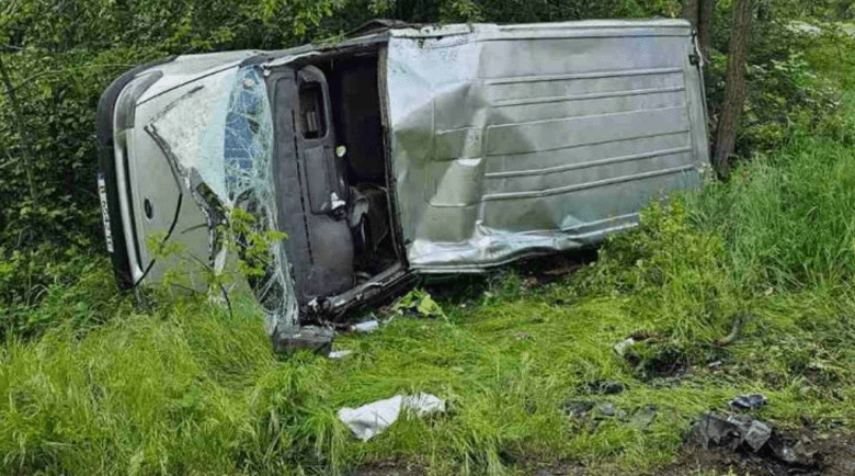 След сблъсъка микробусът е излязъл от пътното платно и се е преобърнал в крайпътната канавка.
