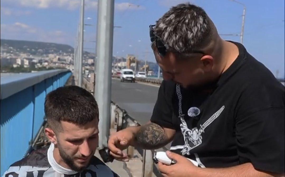 Неочаквана сцена изуми варненци в натовареното движение на Аспарухов мост. Пред погледите на стотици смаяни шофьори, двама мъже решиха да превърнат един от най-натоварените пътни участъци в града в необичайна сцена за подстригване.