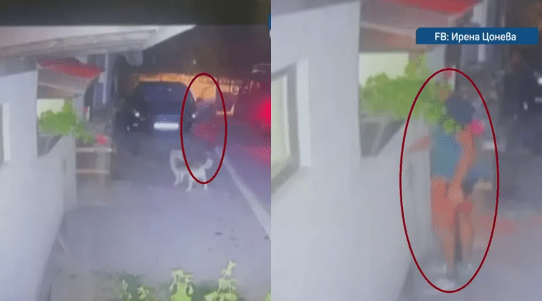 На кадрите се вижда че след фаталния удар по кучето, мъжът разменя реплики с Ирена.