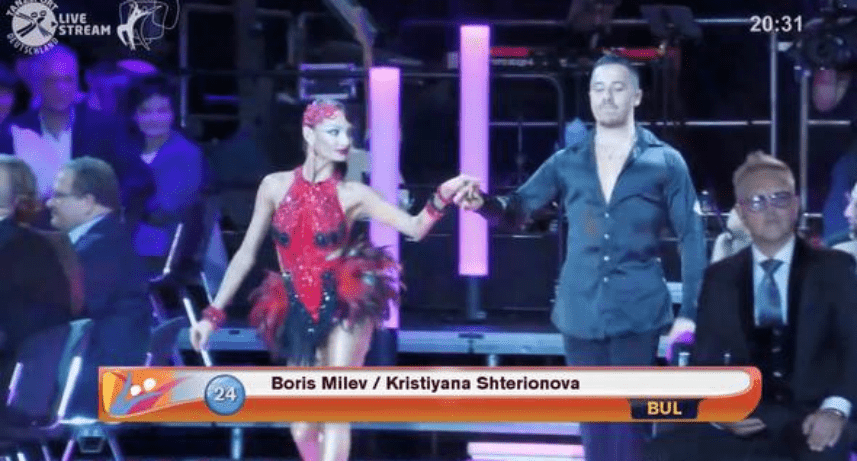 ЛАЙПЦИГ, ГЕРМАНИЯ. Българските звезди на Професионалисти – Латиноамерикански танци, Борис Милев и Кристияна Щерионова, записаха най-големия си успех до момента, който ще остане завинаги в историята на българските спортни танци! На грандиозното Световно Първенство на WDSF в Лайпциг, Германия, дуетът изпълни поставената си цел и завладя полуфиналите, финиширайки на забележителното 11-то място в света!