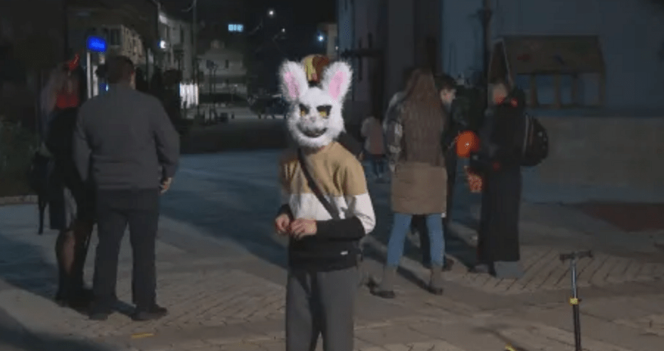 Тази вечер в центъра на Елин Пелин има семейства с деца, което са маскирани и отбелязват Хелоуин.