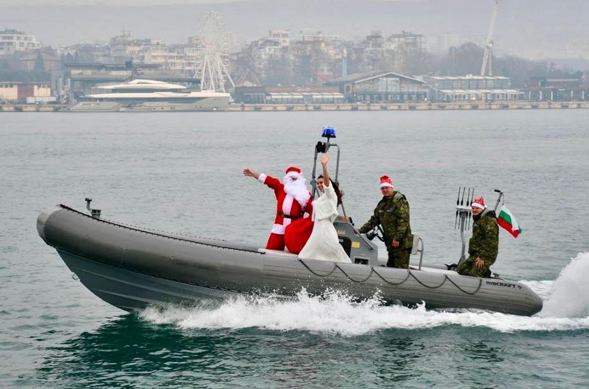 Вместо с традиционната шейна, Дядо Коледа се появи на борда бързоходна лодка от състава на Военноморските сили.
