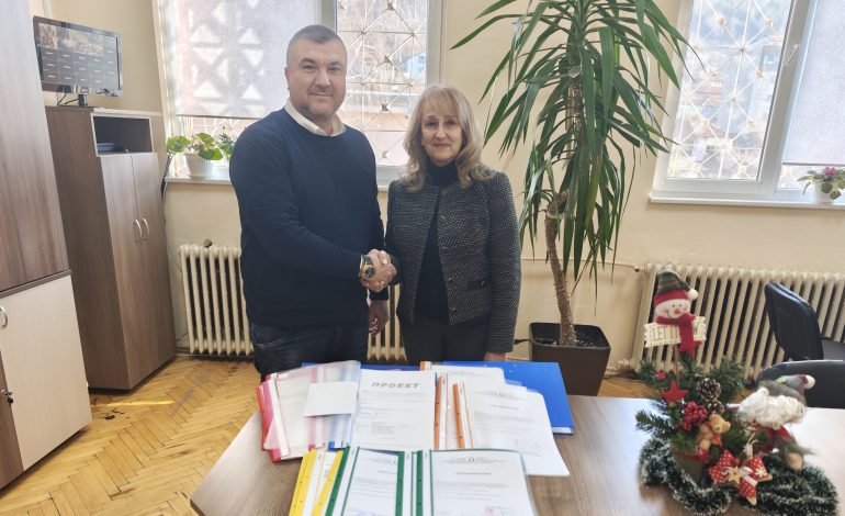 Димитър Димитров бе посрещнат от директора на училището Милена Иванова и и` предаде проектите.