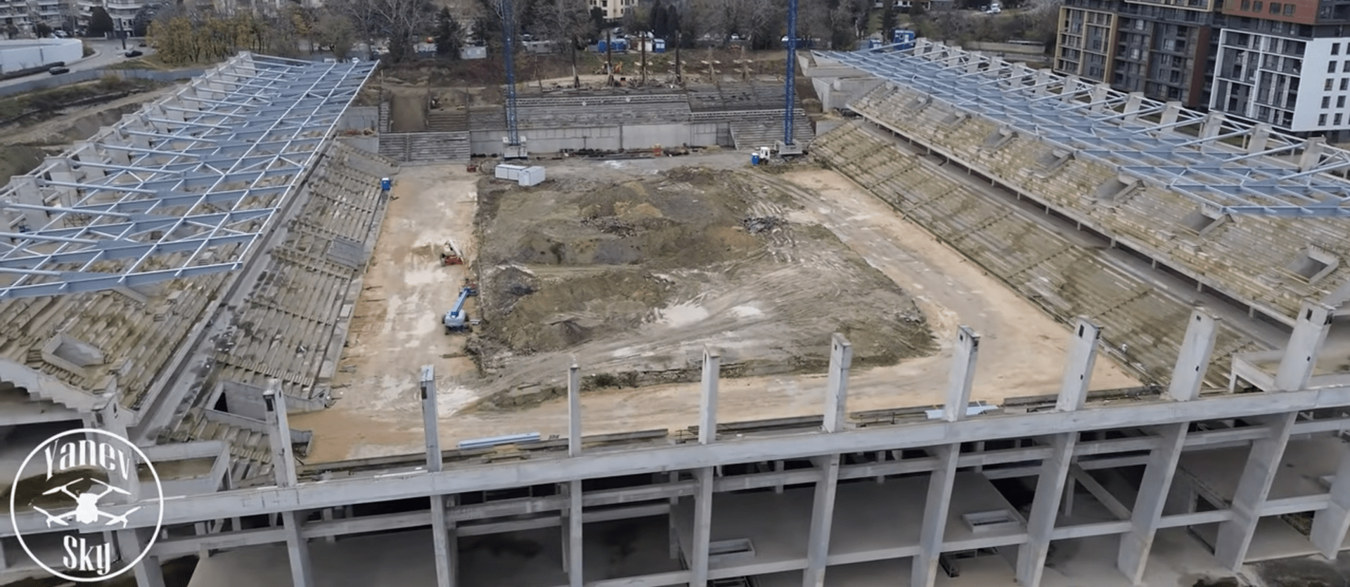 Нов видеоклип на „YanevSky“ показва от въздуха до какъв етап е стигнало изграждането на дългоочаквания стадион „Варна“ – бъдещото спортно бижу на морската столица. Кадрите ясно разкриват мащабите на проекта и напредъка по строителните дейности.