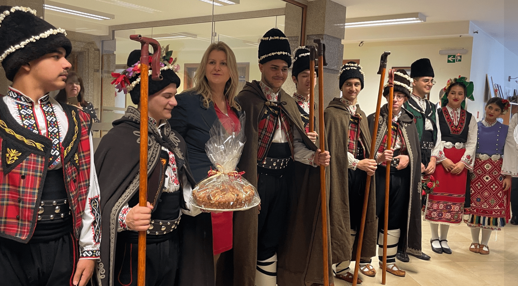 С песни, танци и традиционни наричания за здраве, берекет и сполука, коледарите са създали истинско празнично настроение и са напомнили за силата и живия дух на българските традиции. Янислава Шопова ги е поздравила и, спазвайки обичая, ги е дарила с вит-превит кравай и паричка за здраве и успех.
