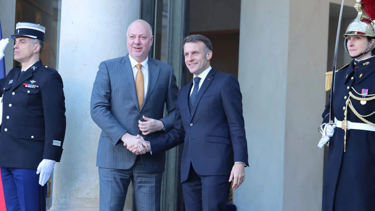 Министър-председателят бе посрещнат от президента на Франция Еманюел Макрон.