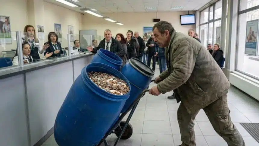 Клиент с три бидона, пълни догоре със стотинки и метални левове, е блокирал работата на банков клон в опит да превалутира спестяванията си в евро. Куриозният случай, който илюстрира огромното логистично предизвикателство пред финансовата система на България, разказа председателят на Асоциацията на банките в България (АББ) Петя Димитрова в ефира на „120 минути“ по bTV.